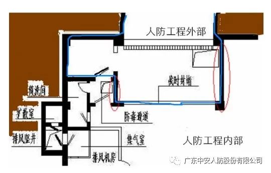 现象:人防门开启方向错误。分析:人防门开启方向为:车库坡道的防护密闭门应朝向坡道方向开启(朝向工程口外),进风口部滤毒室及密闭通道的两扇密闭门均应朝向密闭通道内开启;排风口部简易洗消间及防毒通道内的两扇密闭门,经常会因战时排风管的安装无法正常启闭;楼梯或斜坡处的防爆波活门标高应在楼梯或斜坡之上或之下。防治措施:人防门安装是不应只考虑平时使用方便,应根据设计图纸要求,由防护设备定点厂按要求安装。